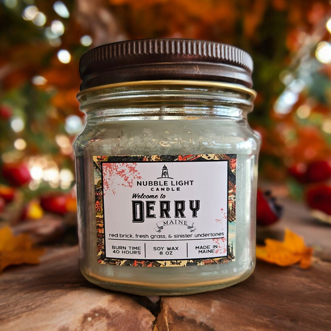 Made in Maine. Hand-crafted soy wax candles developed from the highest quality raw materials. Classic New England fragrances. Inspired by life on the coast. Perfect For: Writers, Horror Lovers, Book Nerds, Office, Library, Living Room, Bathroom, Bedroom, Study Size: 8 fluid ounces, the entire product weighs about 14 ounces. Jars are 3.5" tall and 2.75" in diameter. The approximate burn time is 40-45 hours. Materials: Top-quality soy wax, specially designed glass mason jar, eco-cotton wick, essential oil fragrance blends, and rustic copper metal lid.